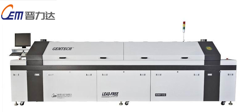 對于首次使用的回流爐,應首先考察一下爐子的結構。看一看有幾個溫區,有幾塊發熱體,是否獨立控溫。熱電偶放墨在何處。熱風的形成與特點,是否構成溫區內循環,風速是否可調節。每個加熱區的長度以及加熱溫區的總長度。目前使用的紅外回流爐,一般有四個溫區,每個加熱區有上下獨立發熱體。熱風循環系統各不相同,但基本上能保持各溫區獨立循環。通常第一溫區為預熱區,第二、三溫區為保溫區,第四溫區為回流區,冷卻溫區為爐外強制冷風,近幾年來也出現將冷卻區設在爐內,并采用水冷卻系統。當然這類爐子其溫區相應增多,以至出現八溫區以上的回流爐。隨著溫區的増多,其溫度曲線的輪廓與爐子的溫度設蚤將更加接近,這將會方便于爐溫的調節。但隨著爐子溫區増多,在生產能力増加的同時其能耗増大、費用增多。