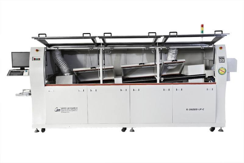 波峰焊的原理及結構第二層流動波或平滑波消除了第一層湍流波引起的毛刺和焊接橋。層流波實際上是傳統通孔組裝中使用的一種波樣。因此,在機器上焊接傳統構件時,可以利用湍流波封閉,利用層流波焊接傳統構件。
